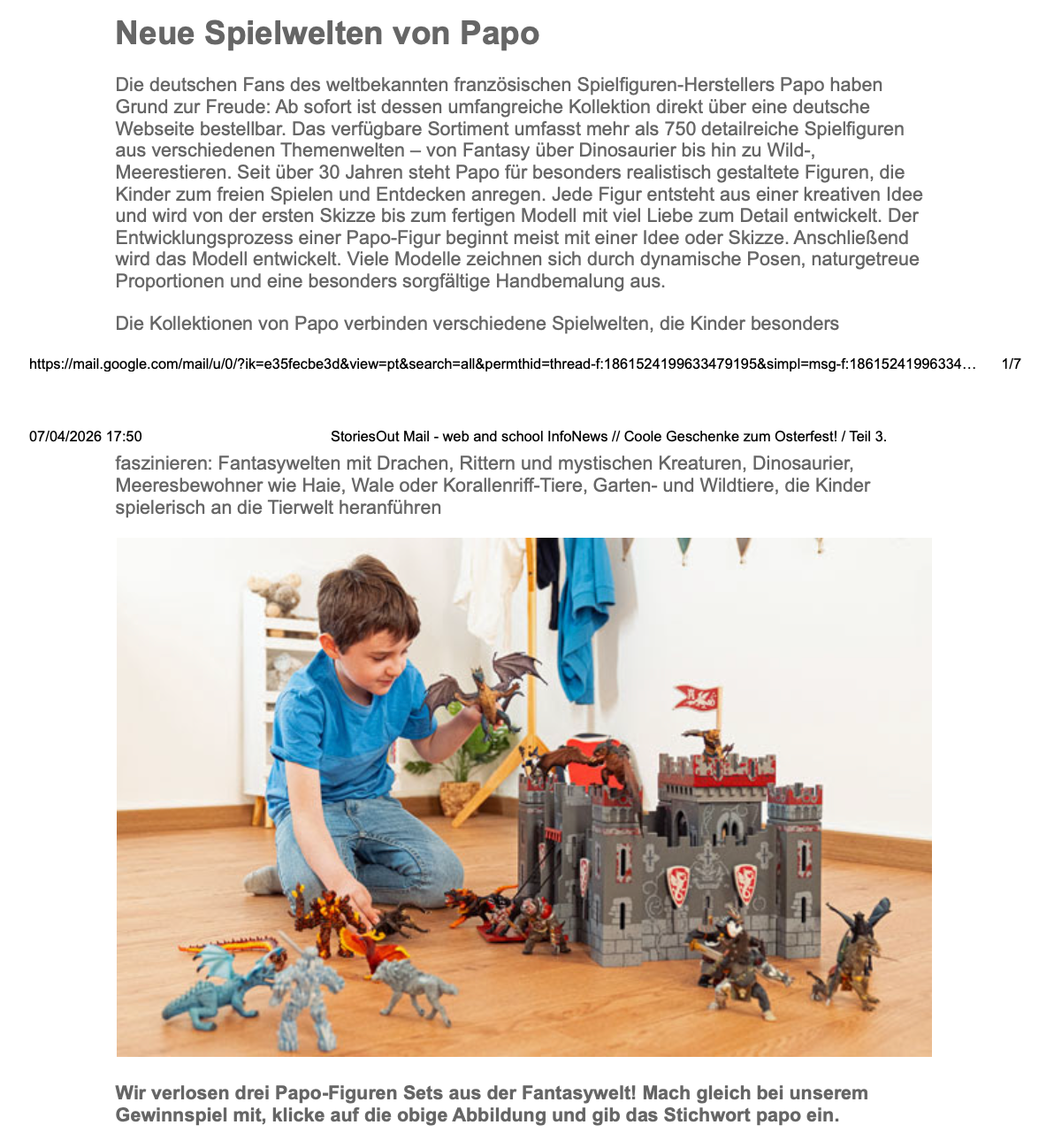 Entdecken Sie eine Auswahl an Artikeln, Berichten und Medienbeiträgen, in denen über Papo und unsere Figurenwelt gesprochen wird.